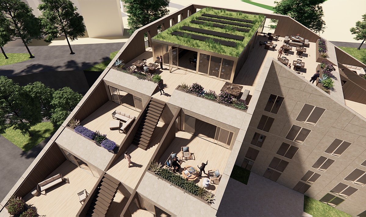 De 4 kamerappartementen beschikken over een privéterras van ca. 35 m²;
